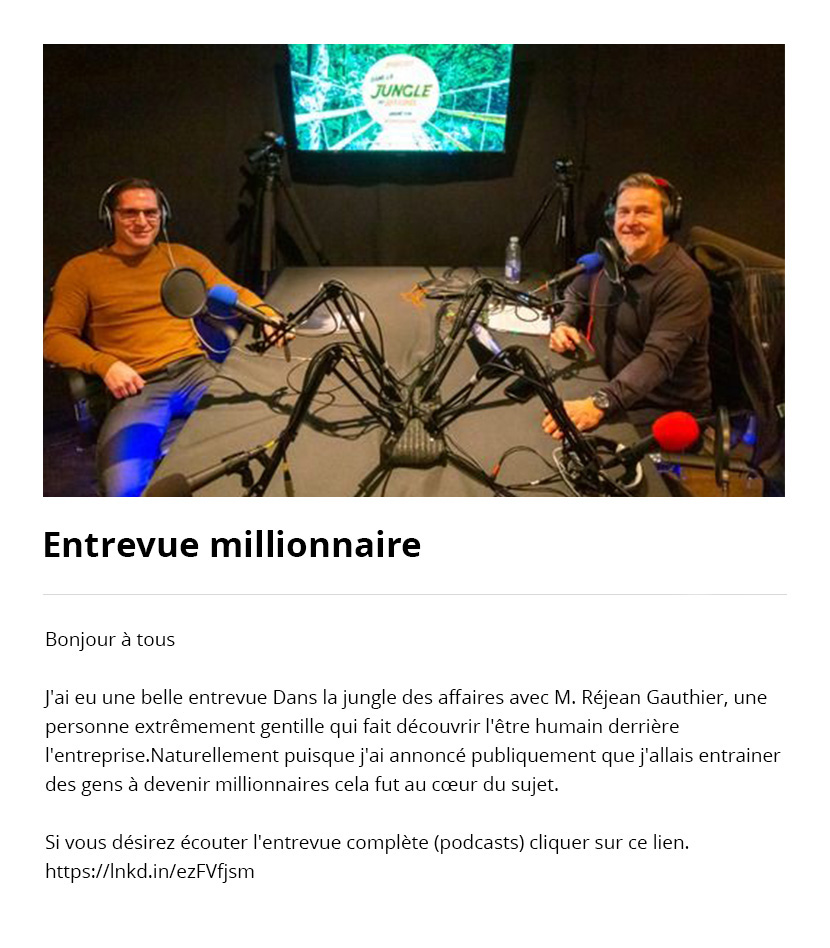 2024 – Une année tout simplement incroyable, entouré de vedettes et de personnes absolument extraordinaires. J’ai accompli des choses exceptionnelles cette année, contribuant à enrichir plusieurs entreprises et individus qui ont connu un succès remarquable grâce à mes conseils. Ensemble, nous avons généré des millions de dollars en chiffre d’affaires, et ce n’est que le début d’une grande aventure.